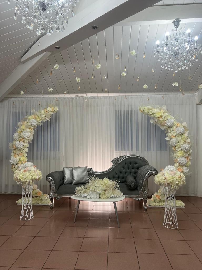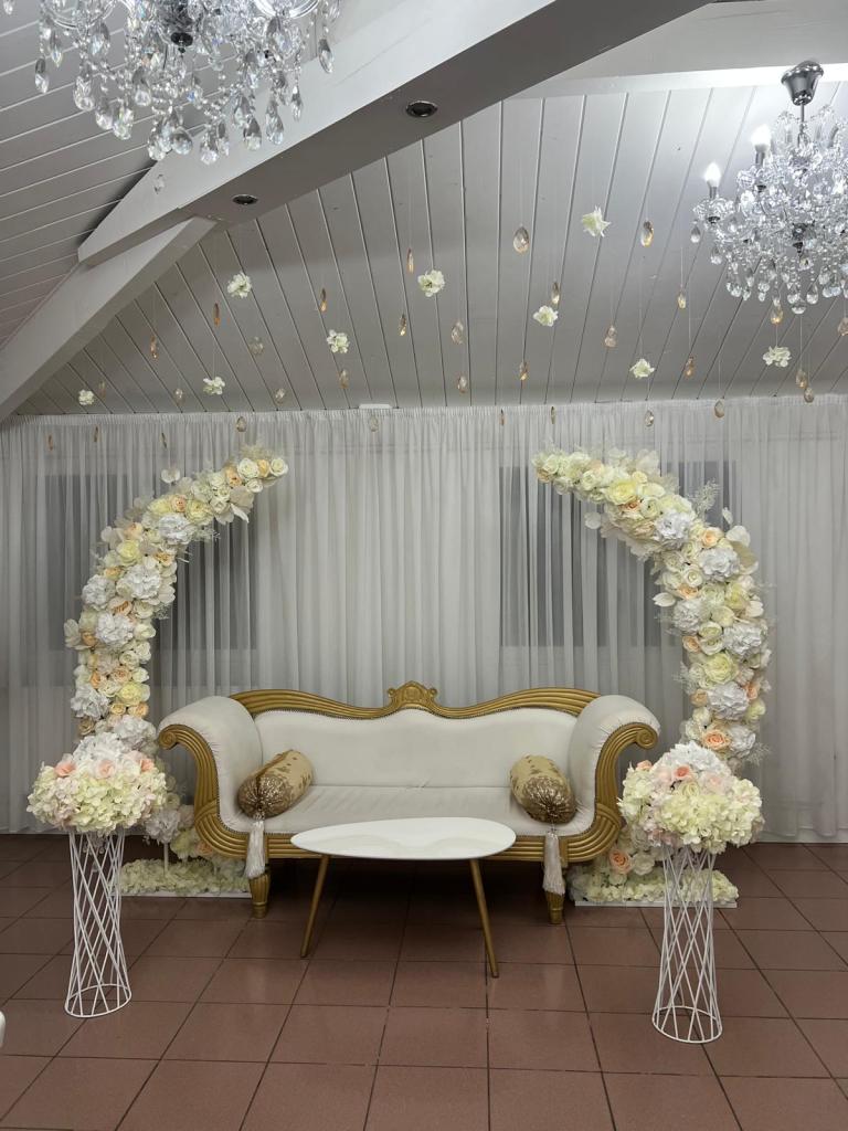 - Podium décoré de fleurs : Un espace surélevé, magnifiquement orné de fleurs, pour célébrer l’amour dans une ambiance féerique et raffinée.